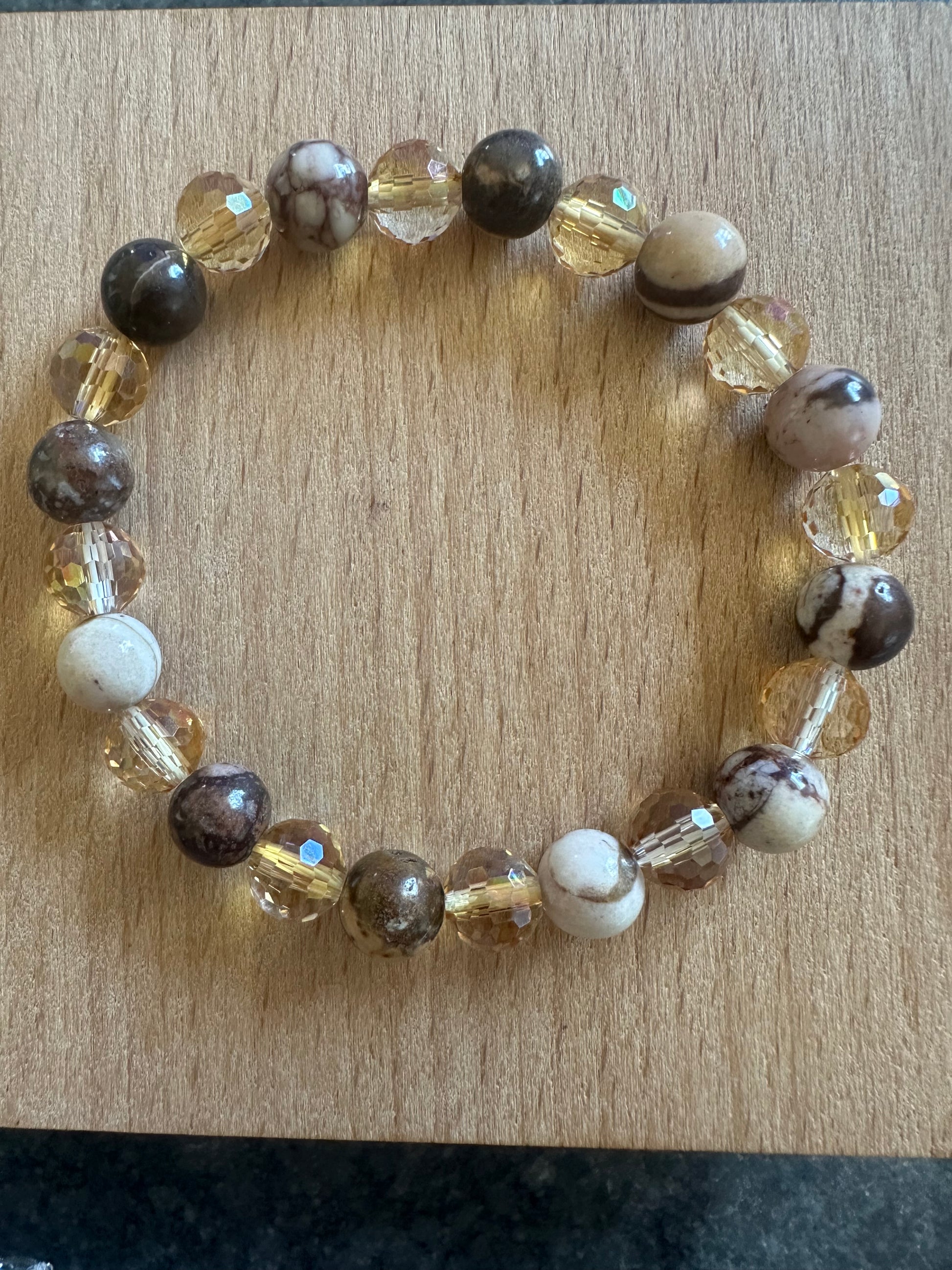 8mm Australian Zebra Jasper & 8mm Faceted Champagne Glass beads.