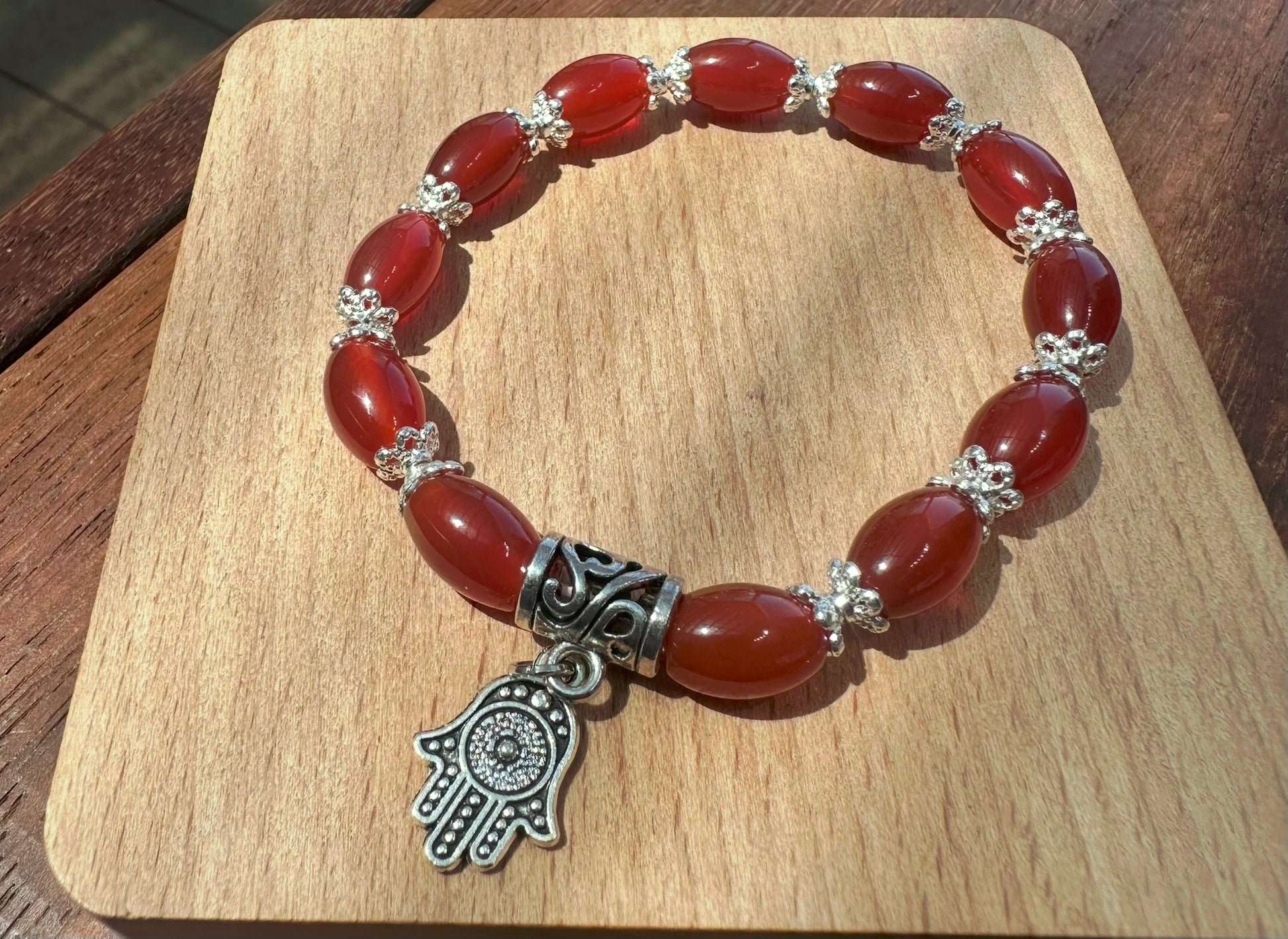 Carnelian is often known as a stone of vitality, courage, and motivation, believed to boost energy and inspire creativity and passion. It is thought to strengthen confidence and determination, helping to overcome fear, hesitation, or self-doubt while encouraging action and perseverance. Many value it for its grounding and stabilizing qualities, which bring emotional balance and resilience, making it a powerful stone for personal growth, empowerment, and pursuing goals with clarity and enthusiasm.