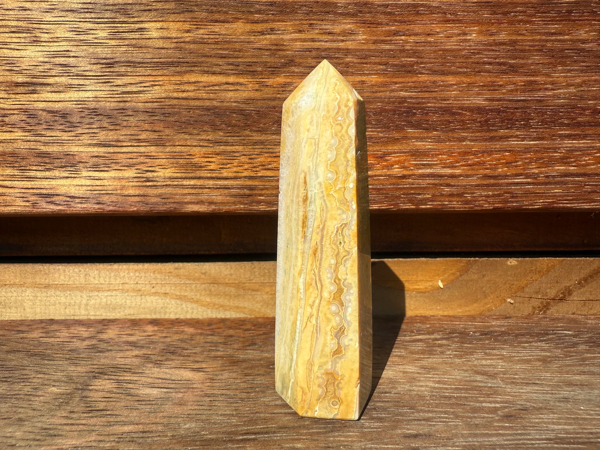Crazy Lace Agate is often called the stone of laughter and joy, believed to carry uplifting and playful energy that promotes optimism and lightheartedness. It is thought to encourage emotional balance, helping to release tension, stress, and self-doubt while fostering confidence and self-acceptance. Many value it for its protective and grounding qualities, seeing it as a stone that brings stability, inner strength, and resilience while also inspiring vitality, creativity, and a positive outlook on life.