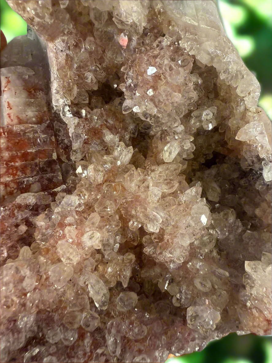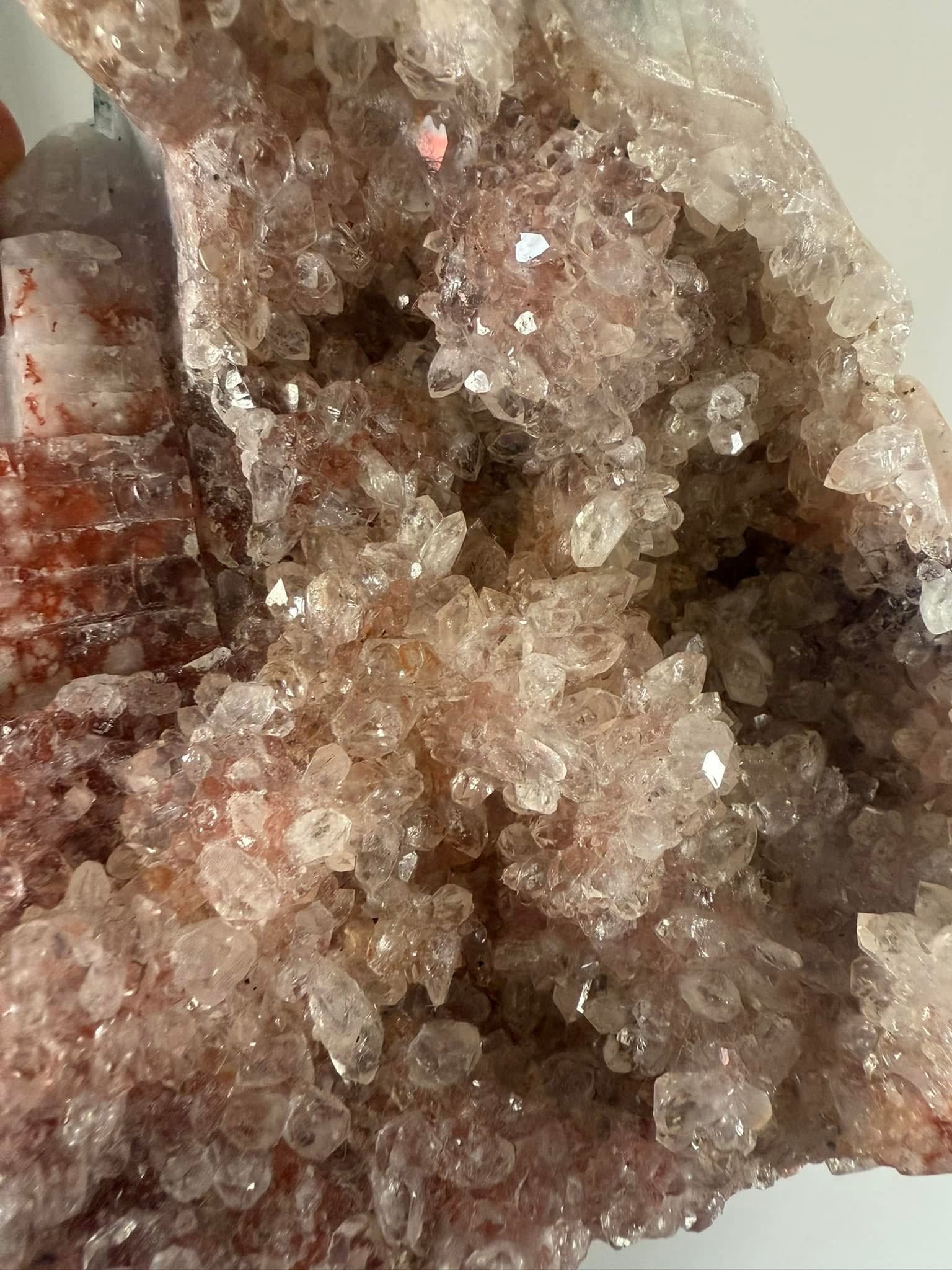 Pink amethyst offers metaphysical benefits such as promoting love, emotional healing, self-esteem, and spiritual connection by balancing the heart, third eye and crown chakras. It's said to alleviate stress, anxiety, and negative emotions, foster clarity and intuition, and create harmonious energy in living and work spaces. The crystal also supports transitions, assists with grief, and promotes restful sleep, according to some beliefs.
