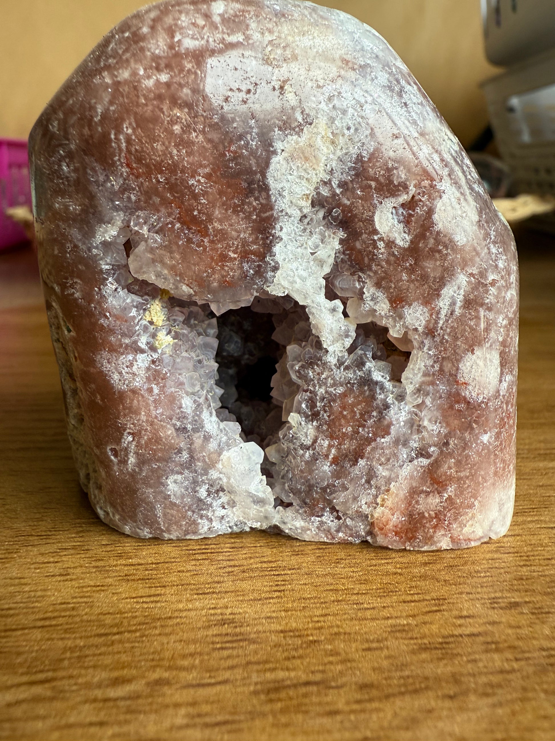 Pink amethyst offers metaphysical benefits such as promoting love, emotional healing, self-esteem, and spiritual connection by balancing the heart, third eye and crown chakras. It's said to alleviate stress, anxiety, and negative emotions, foster clarity and intuition, and create harmonious energy in living and work spaces. The crystal also supports transitions, assists with grief, and promotes restful sleep, according to some beliefs.